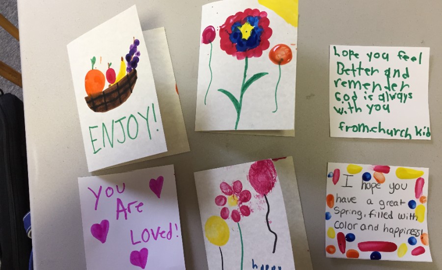 Today, in Tuthill House, the kids made cards for the local seniors who receive meals through Meals-on-Wheels. Here is