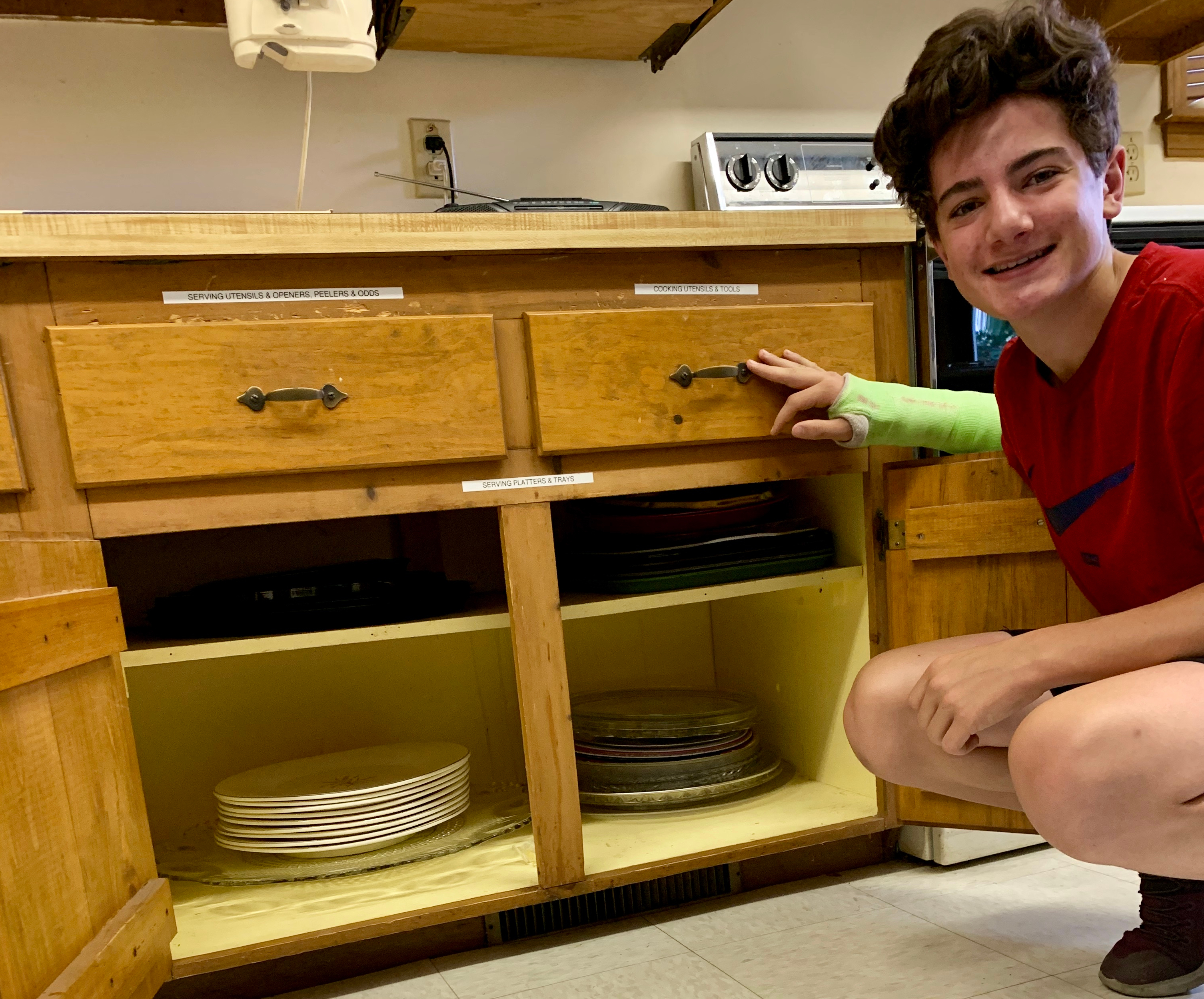 When it's Summer, your arm is broken and your mom is on Church Support - what do you do? You volunteer. In August, Zach Diamond cleaned out every cabinet in our Kitchen - straightening, counting and putting things back in place. It looks amazing - Marie Kondo would be proud (his mom certainly is). And we are happy to report we have plenty of supplies in almost every category. And thank you to all who reclaimed their teasures left behind.