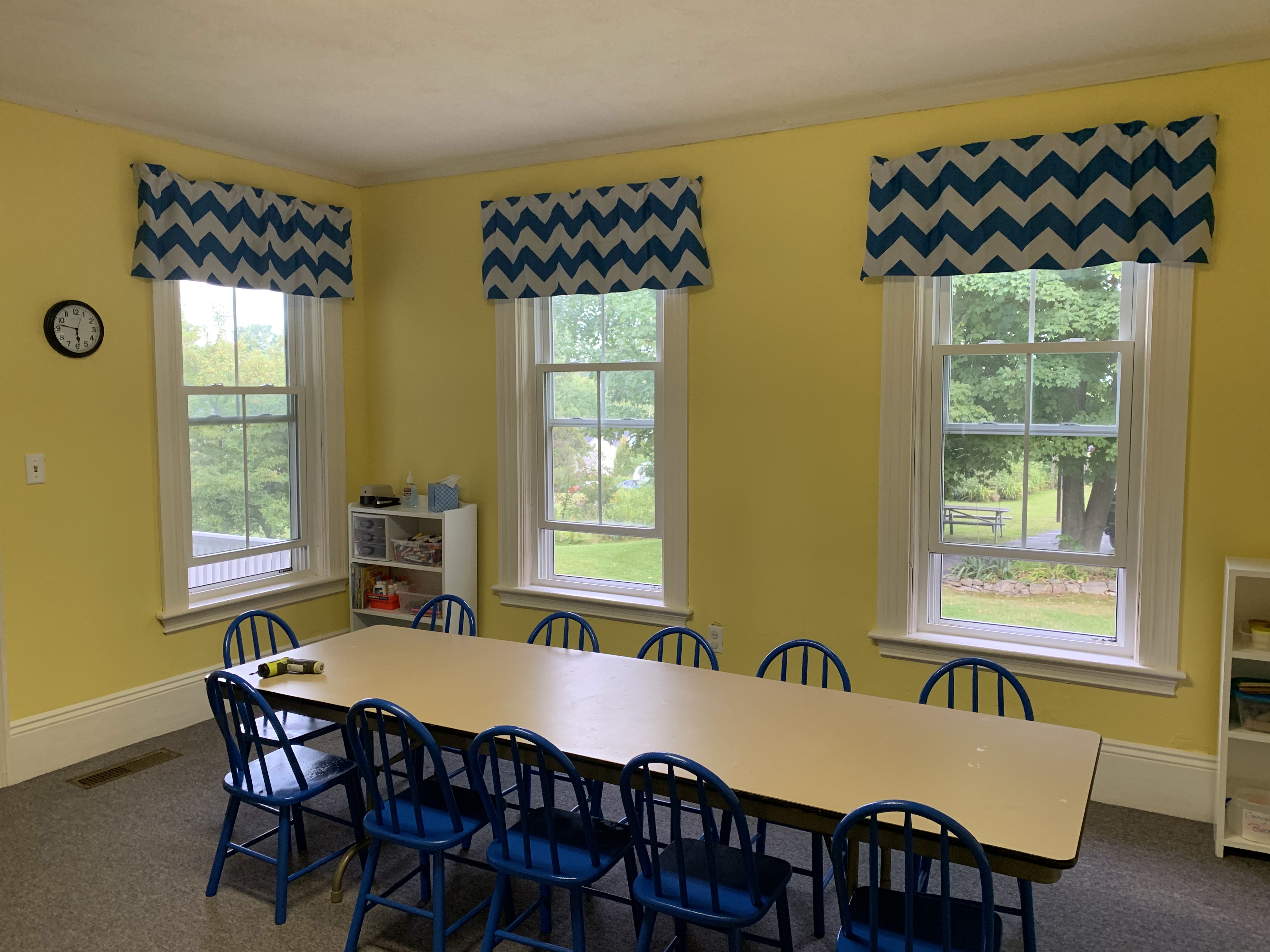 As the decorations from VBC came down, so did some old wallpaper in Tuthill House - forcing us to give a few rooms some much needed refreshing. The first room on the left, as you enter the building, is complete and ready to accept new students. A second room is still underway. Special thanks to Linda Fisher, Kristen Diamond, Zach Diamond, Caroline Diamond, Nick Peters and Paul Torpey for all the hard work.